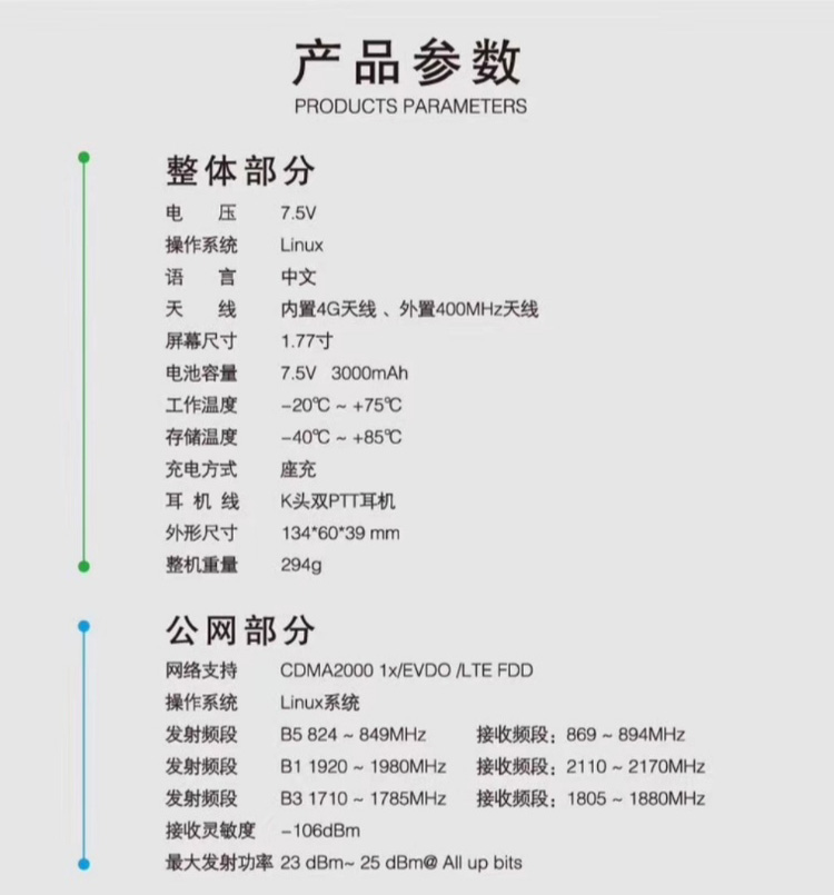 ● 网络形式:电信4G+双模